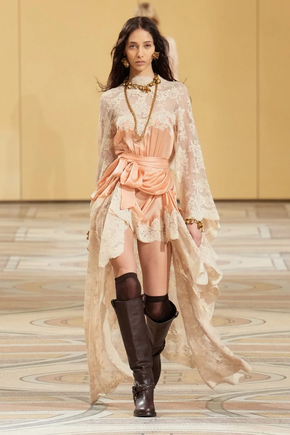 - Lingerie-inspired lace reborn as dramatic robes and slip dresses
